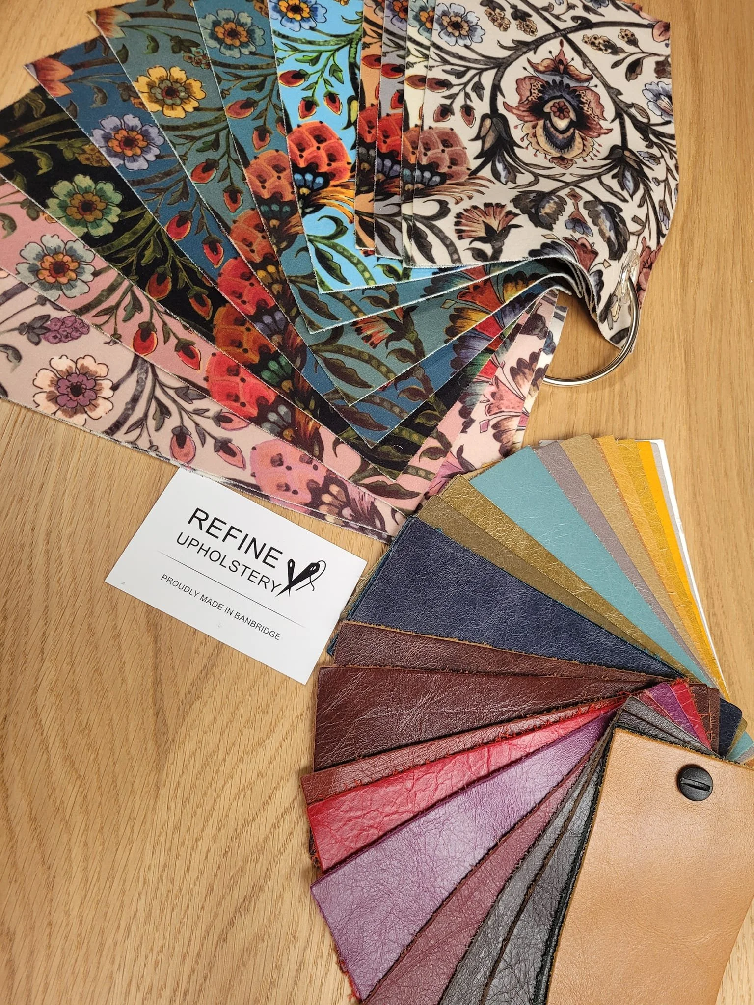We work with a number of locally based businesses for quality fabrics and distinctive designs. Find a list of the businesses we partner with below, to choose the fabrics for your item: